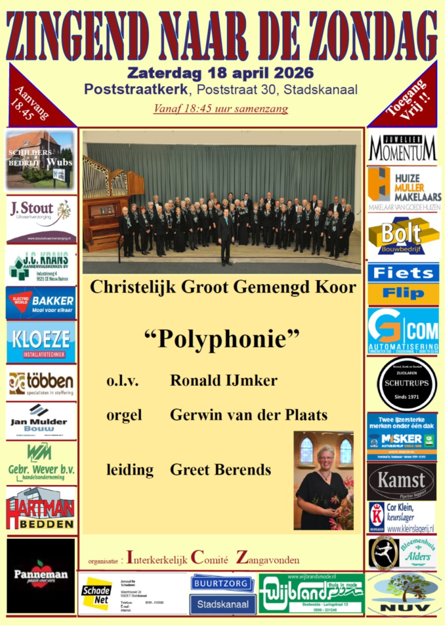 Ook het Chr. Groot Gemengd Koor Polypfonie uit Stadskanaal is aanwezig en zal voor en met ons zingen.